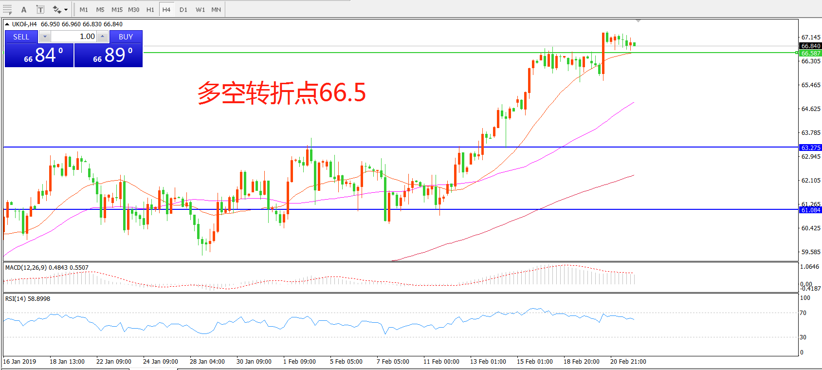 交易策略:在66.50之上看涨,目标67.00   70.00