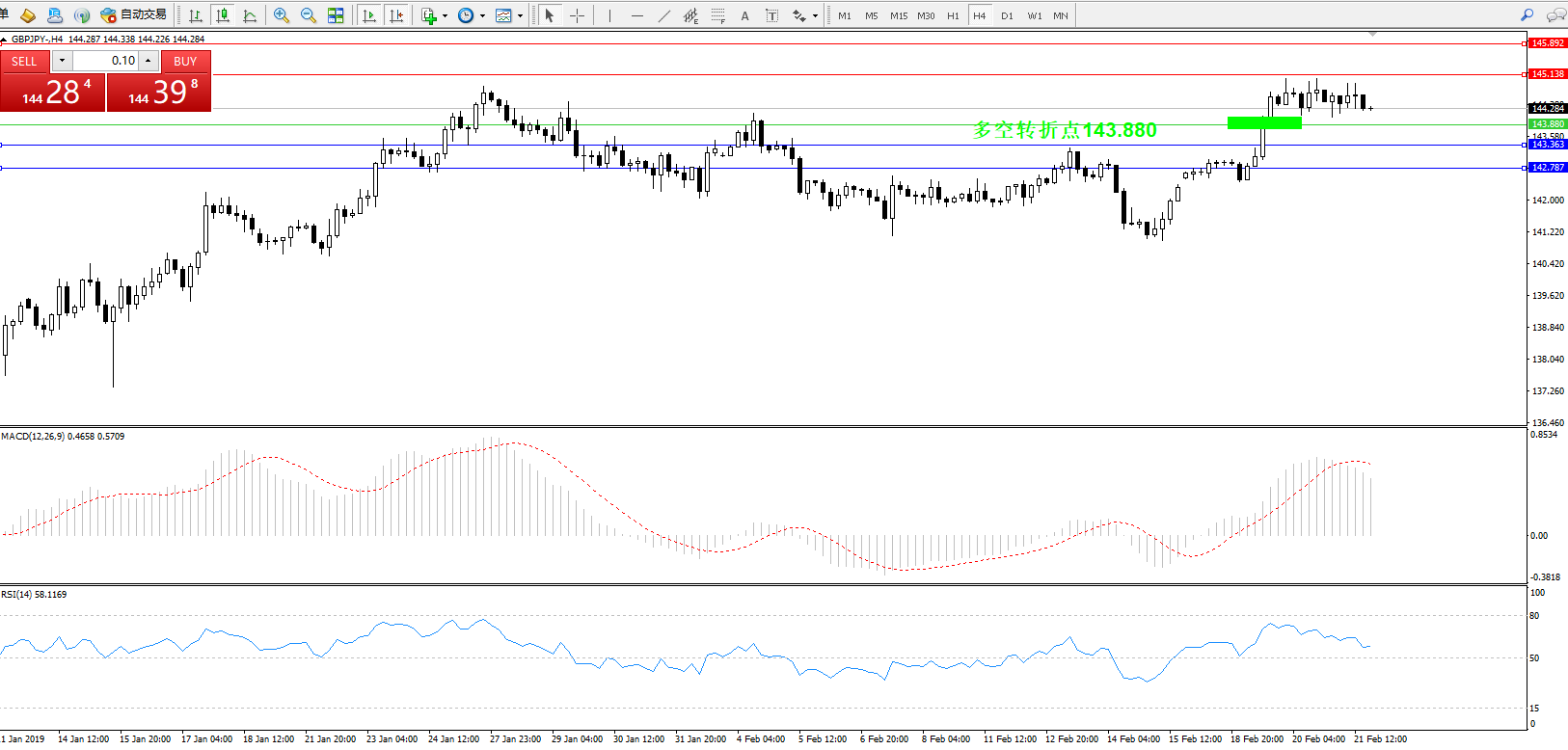 交易策略:143.880上方看涨,目标145.138、145.892