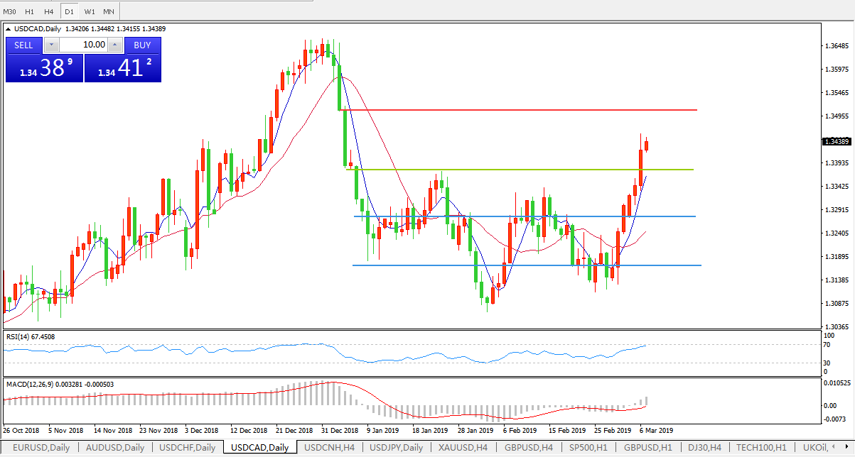 基本面分析:加拿大央行利率决议维持利率在1.75%不变,加拿大央行预计将继续保持政策利率低于中性利率区间,下一次加息时机的不确定性增加。鉴于经济数据呈现了好坏参半的前景,需要时间来衡量经济将持续低于潜在增速的时间以及通胀前景的影响。未来加息速度的不确定性意味着加拿大央行将继续密切监测家庭支出、油市以及全球贸易政策。