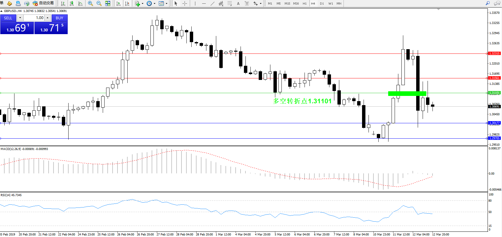 交易策略:1.31101下方看跌,目标1.30177、1.29705