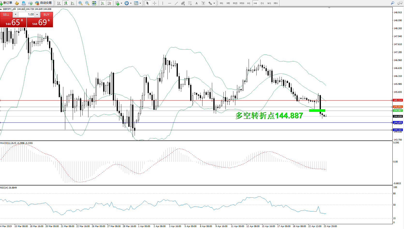 交易策略:144.887下方看跌,目标144.409144.102
