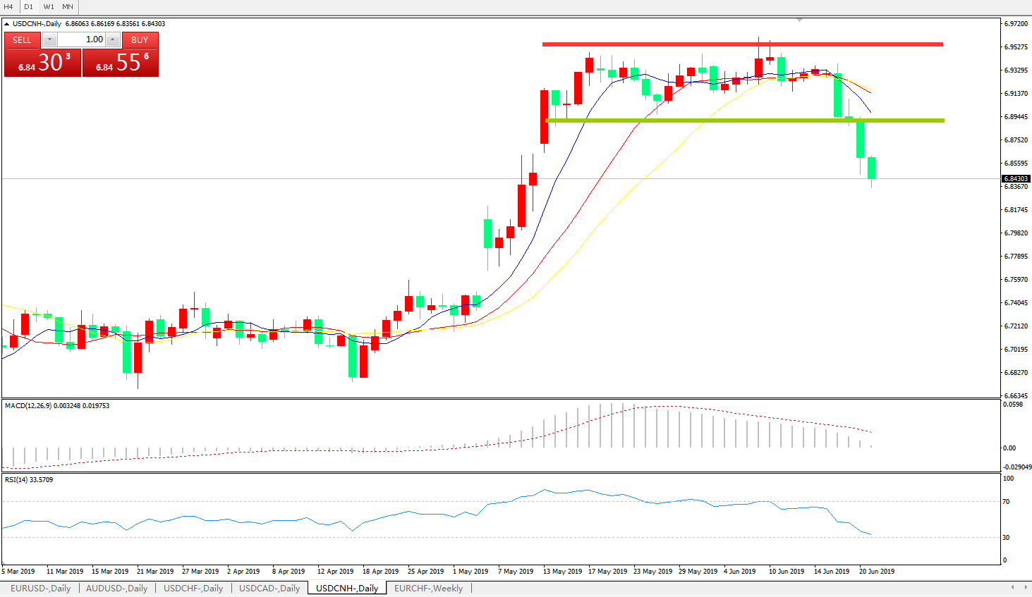 技术面简析:日线均线发散下行MACD逼近0轴且动能柱持续缩量RSI逐步走低,预计短期汇价有继续回落需求,贸易争端缓解及G20乐观预期推动,汇价大概率将进一步走低