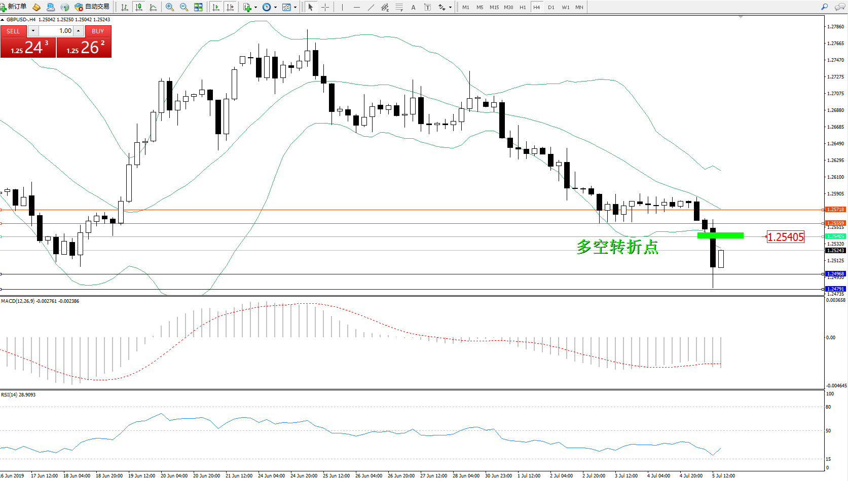 交易策略:1.25405下方看跌,目标1.24968、1.24791