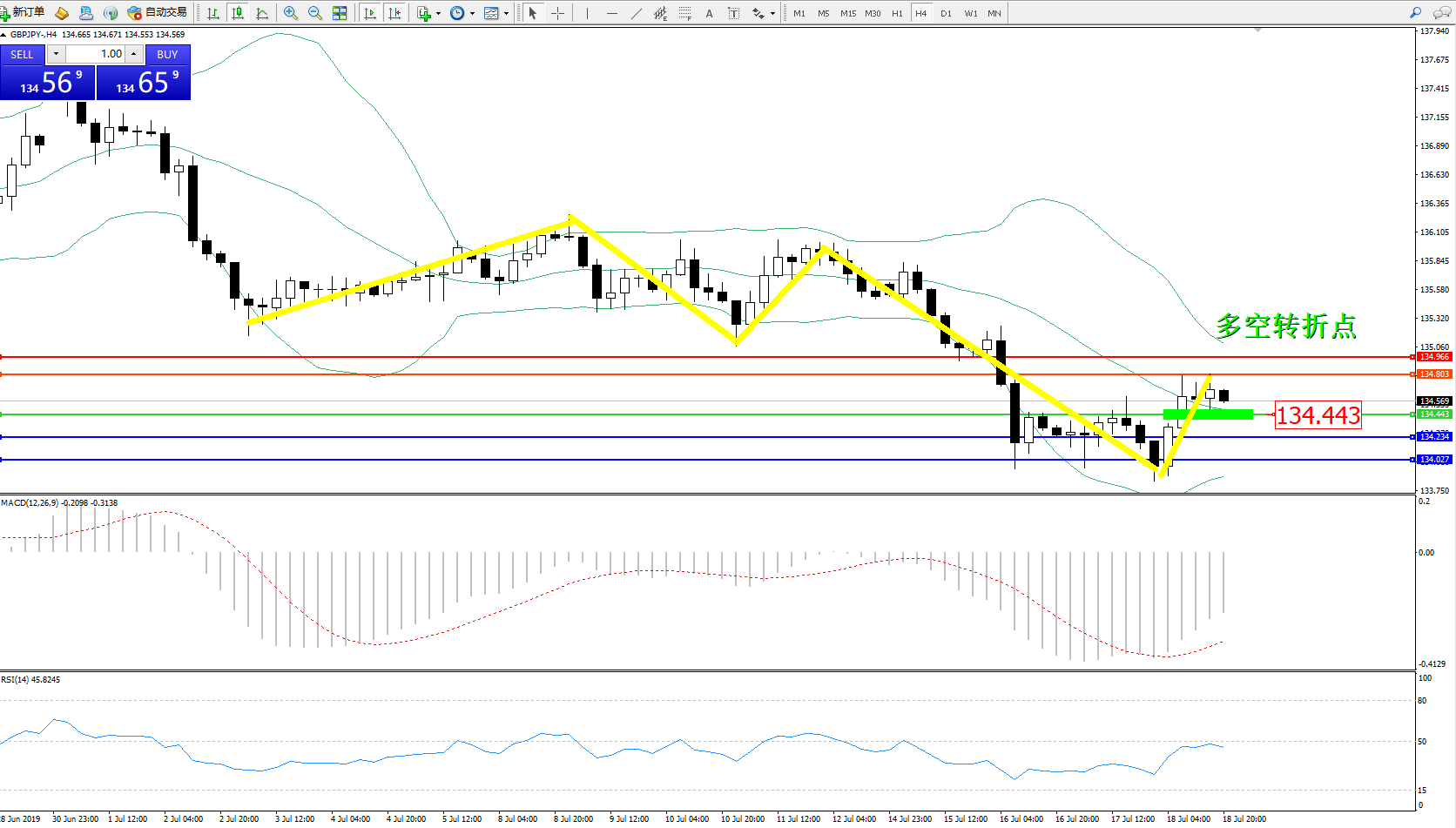 交易策略:134.443上方看涨,目标134.803134.966