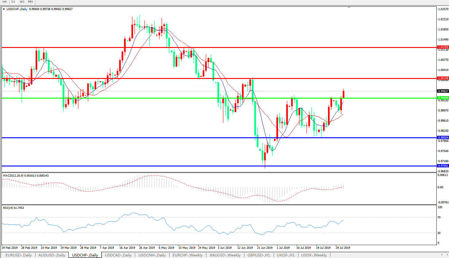 美元兑瑞郎USDCHF   日线图: