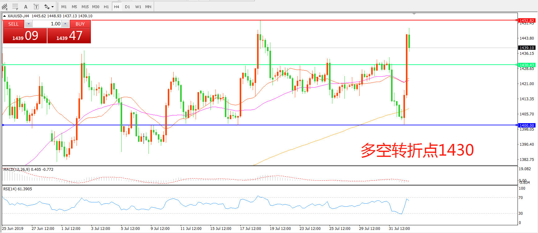 美联储议息会议的基调不及预期鸽派,市场认为美国不太可能实施漫长的宽松周期。8月2日,美国总统特朗普发推表示将对中国输美商品加征新一轮关税引发市场强烈担忧,避险情绪推升黄金一路走高,金价自日内低位反弹近45美元,最终收报1436.78美元/盎司。目前市场一方面有各国央行纷纷降息,另一方面很多央行都在增持黄金储备,金价上行环境十分良好。市场目前正等待周五公布的美国非农就业数据,本周最后的重磅数据有可能继续引发大行情的出现。