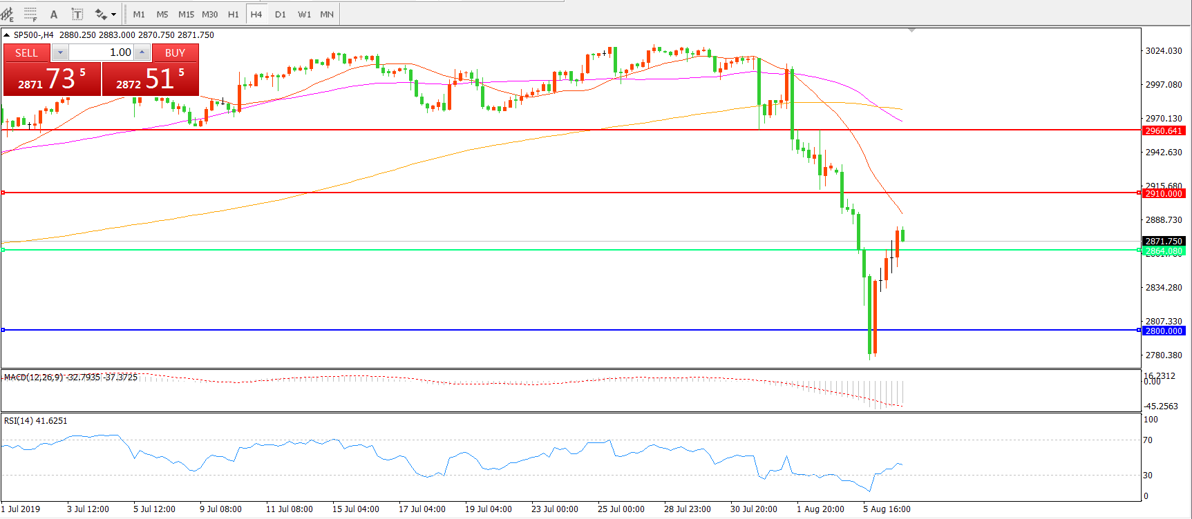 交易策略:在2864.00之下看跌,目标2800.00      2737.00