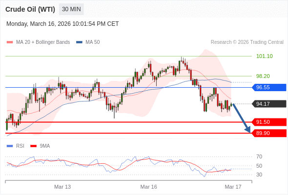 在 96.55 之下,看跌,目标价位为 91.50 ,然后为 89.90 。