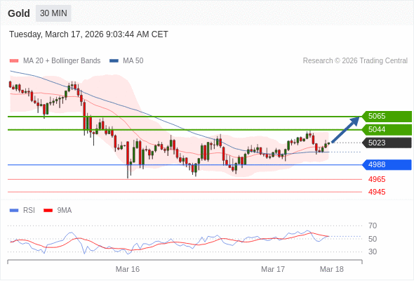 在 4988 之上,看涨,目标价位为 5044 ,然后为 5065 。