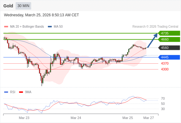 在 4445 之上,看涨,目标价位为 4660 ,然后为 4735 。