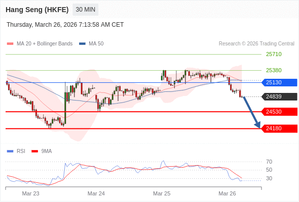 在 25130 之下,看跌,目标价位为 24530 ,然后为 24180 。