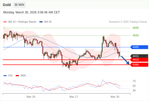 在 4485 之下,看跌,目标价位为 4410 ,然后为 4380 。
