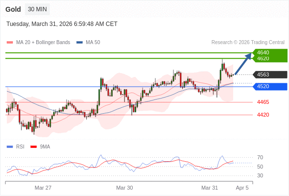 在 4520 之上,看涨,目标价位为 4620 ,然后为 4640 。