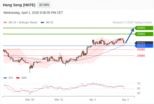 在 25210 之上,看涨,目标价位为 25600 ,然后为 25800 。