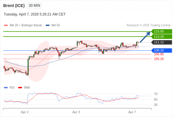 布伦特原油 (ICE) (M6) 当日内: 进一步上涨。