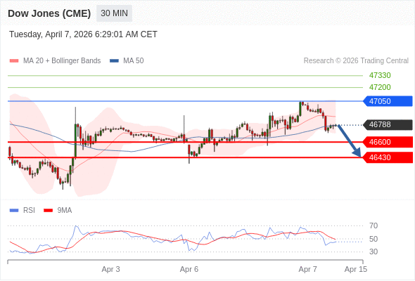 在 47050 之下,看跌,目标价位为 46600 ,然后为 46430 。