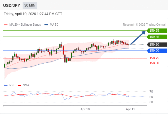 在 159.00 之上,看涨,目标价位为 159.45 ,然后为 159.65 。