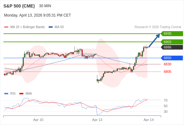 在 6850 之上,看涨,目标价位为 6903 ,然后为 6930 。