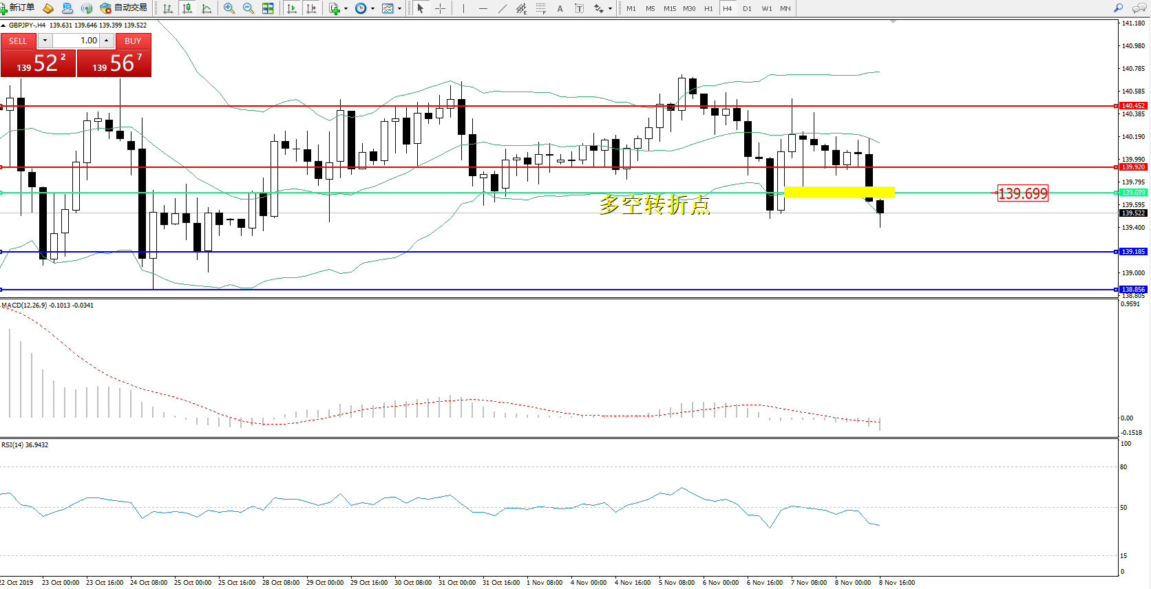 交易策略:139.699下方看跌,目标139.185138.856