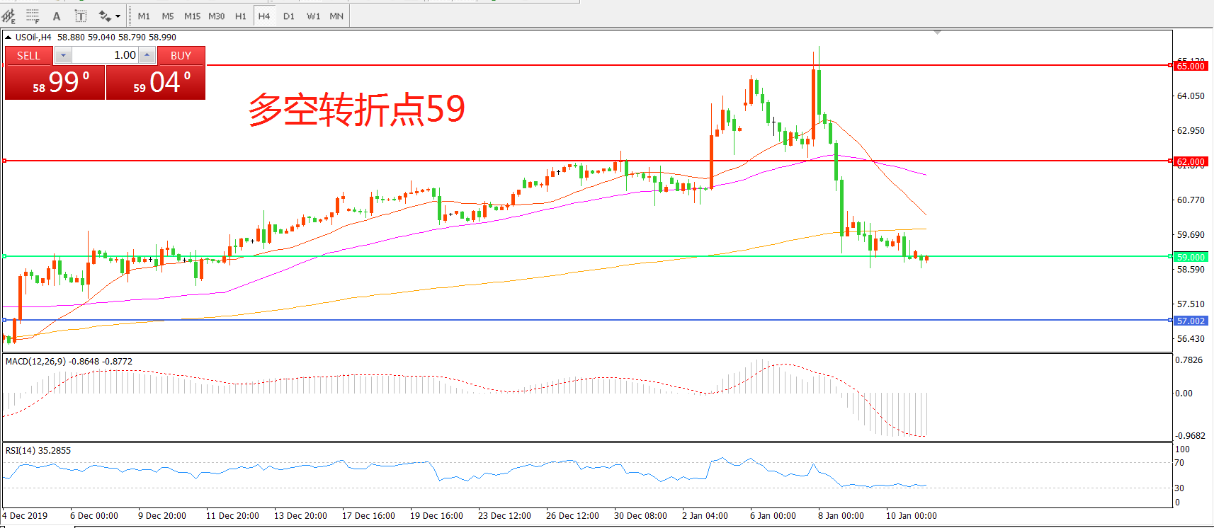 多空转折点:59.00