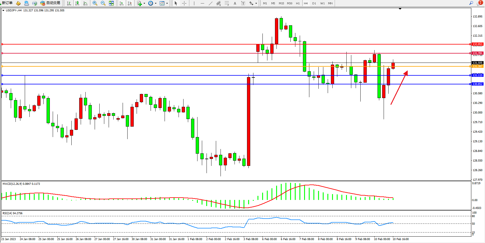 交易策略:131.387上方看涨,目标131.781、132.053