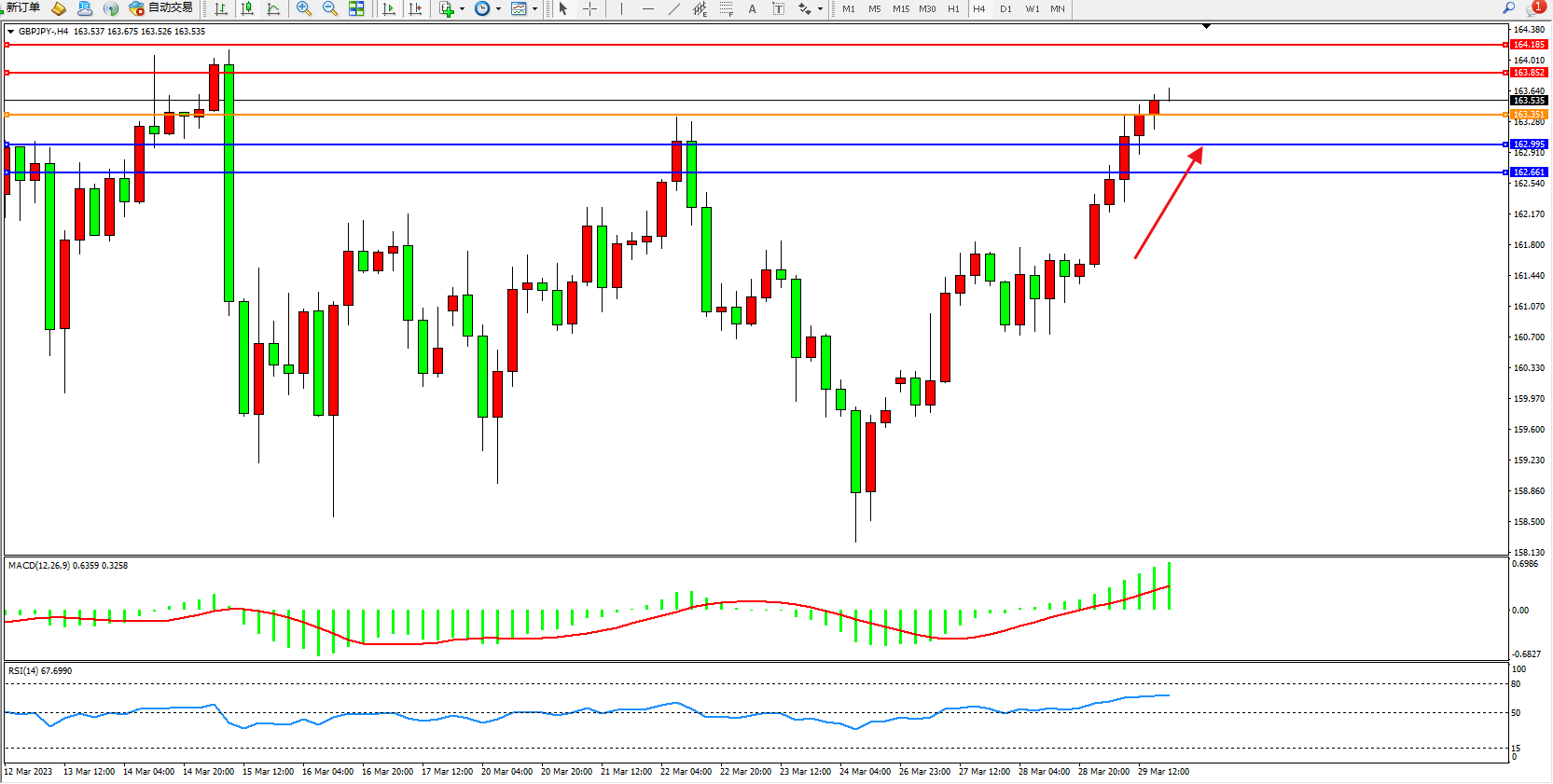 交易策略:163.351上方看涨,目标163.852  164.185