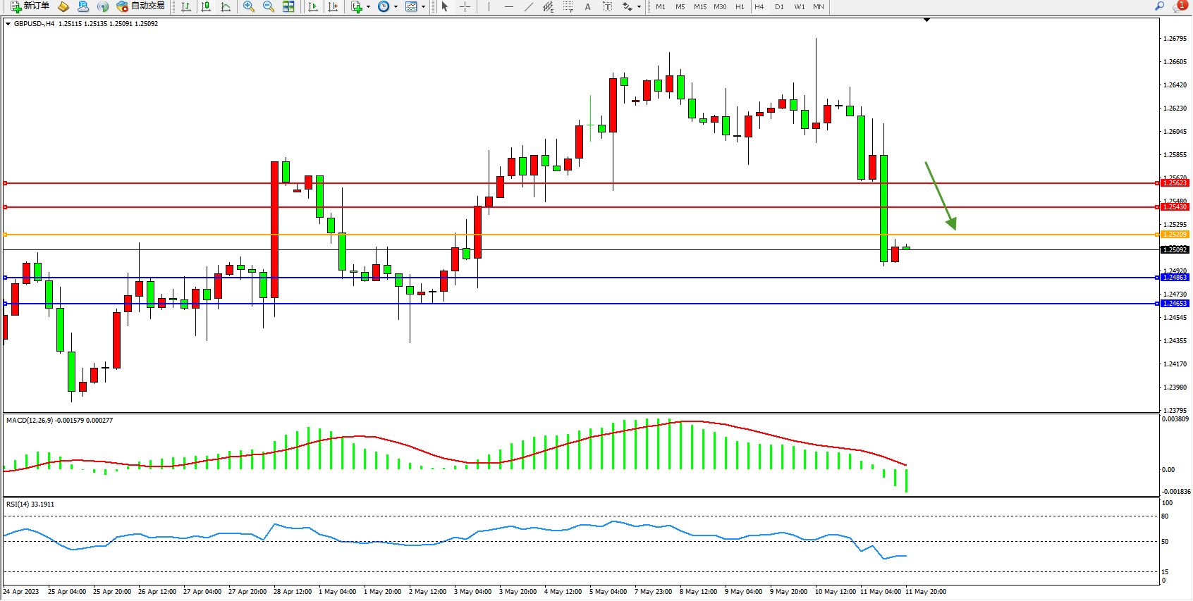 英镑美元GBPUSD ——4小时K线图显示: