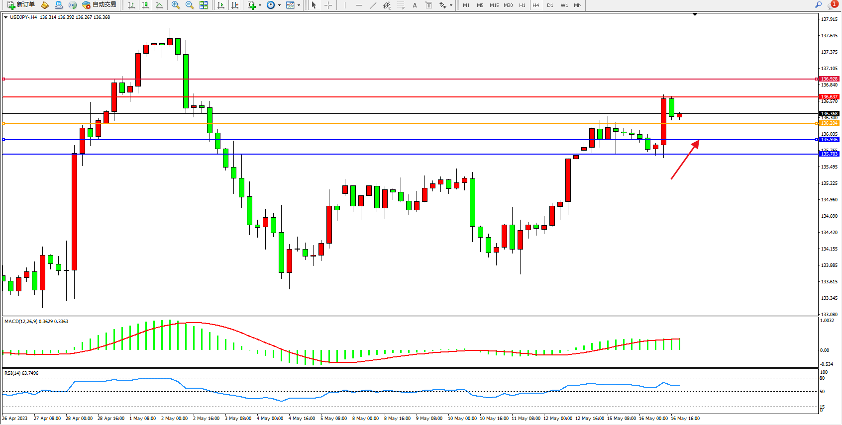 阻力位:136.637  136.928