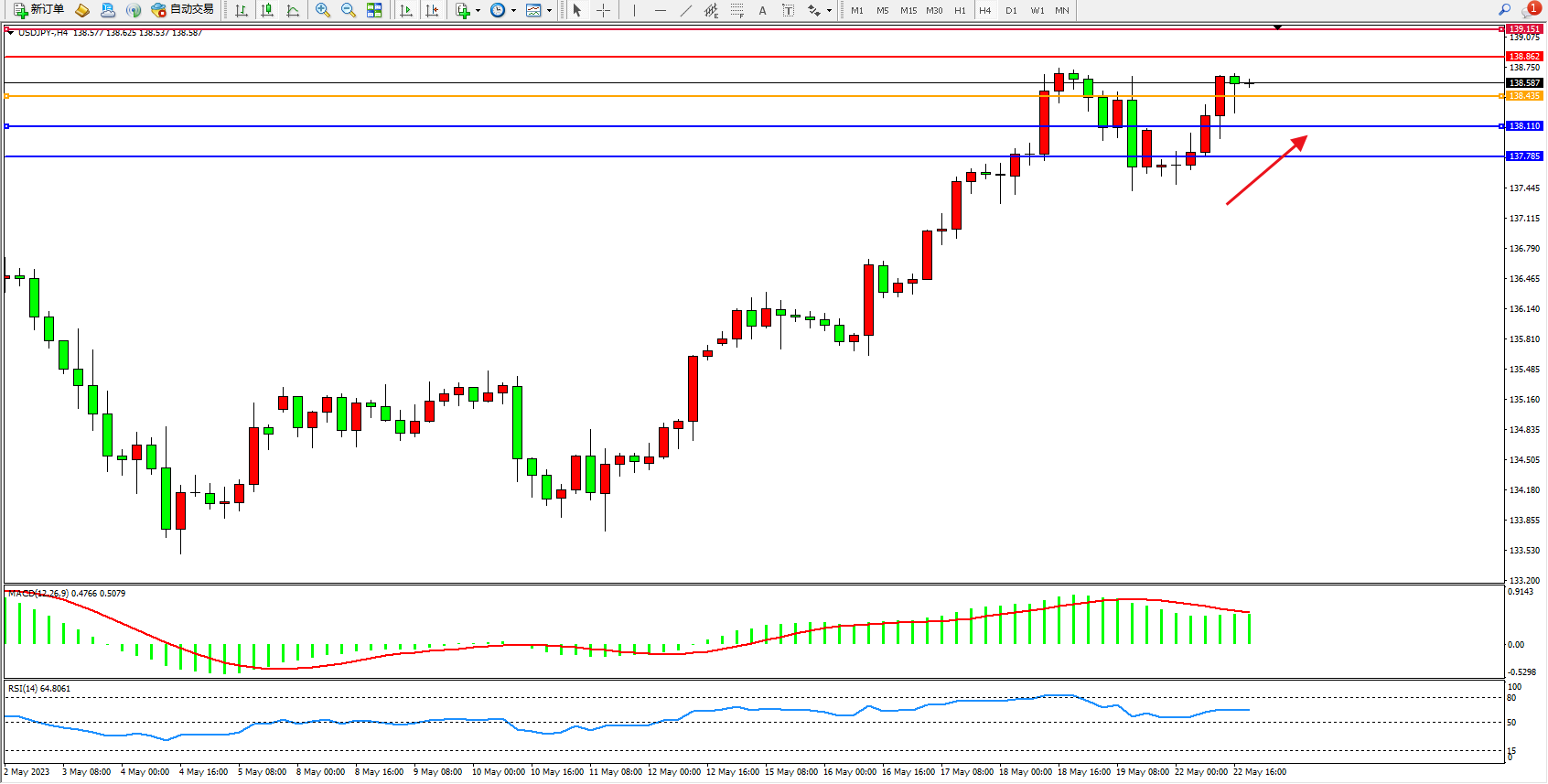 交易策略:138.435上方看涨,目标138.862 139.151