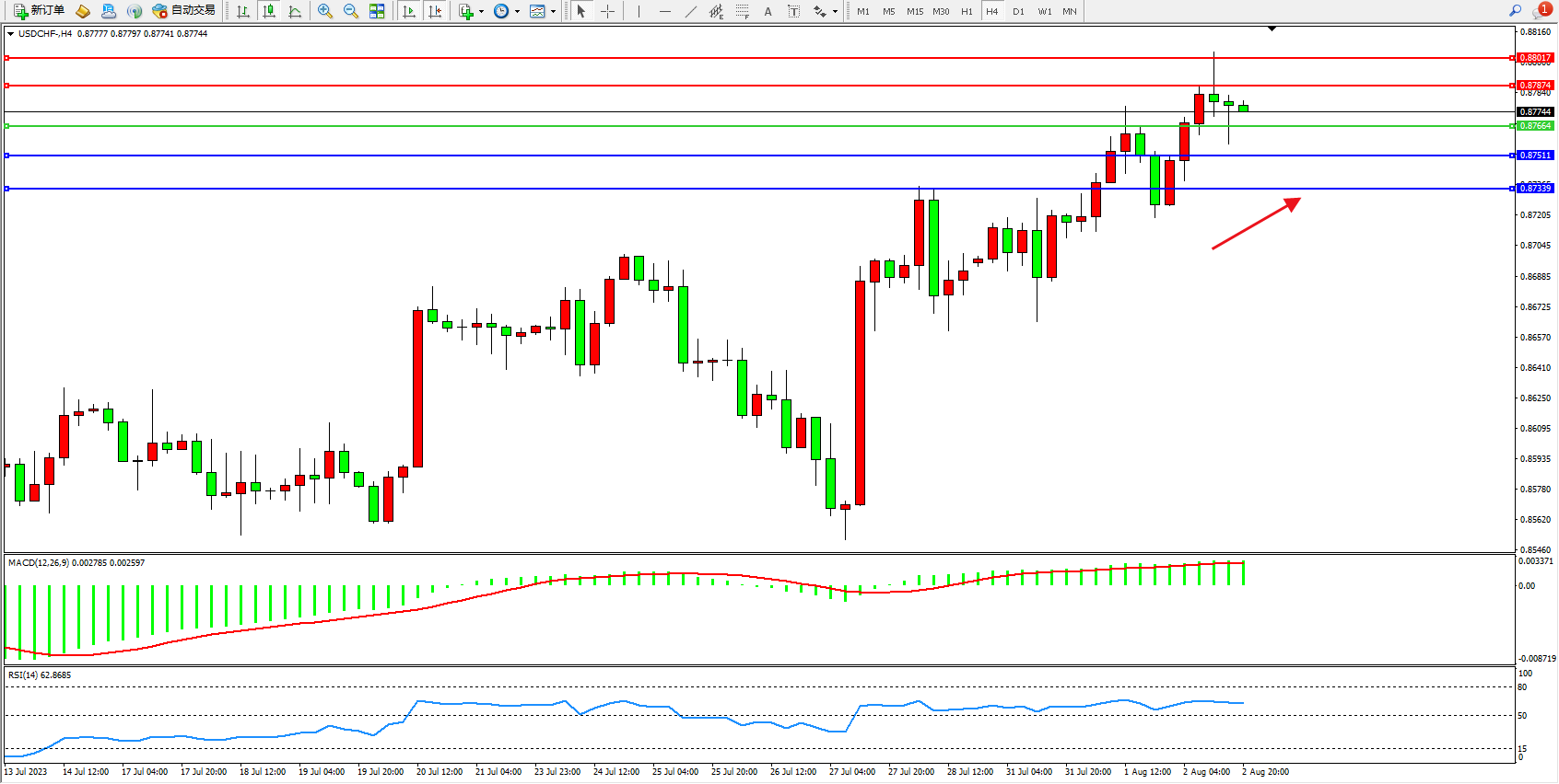 备选策略:0.87664下方看跌,目标0.87511  0.87339