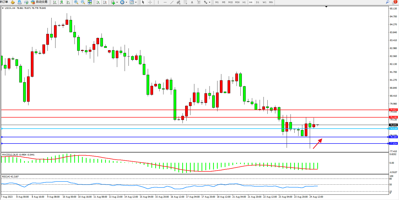 原油USOil——4小时K线图显示: