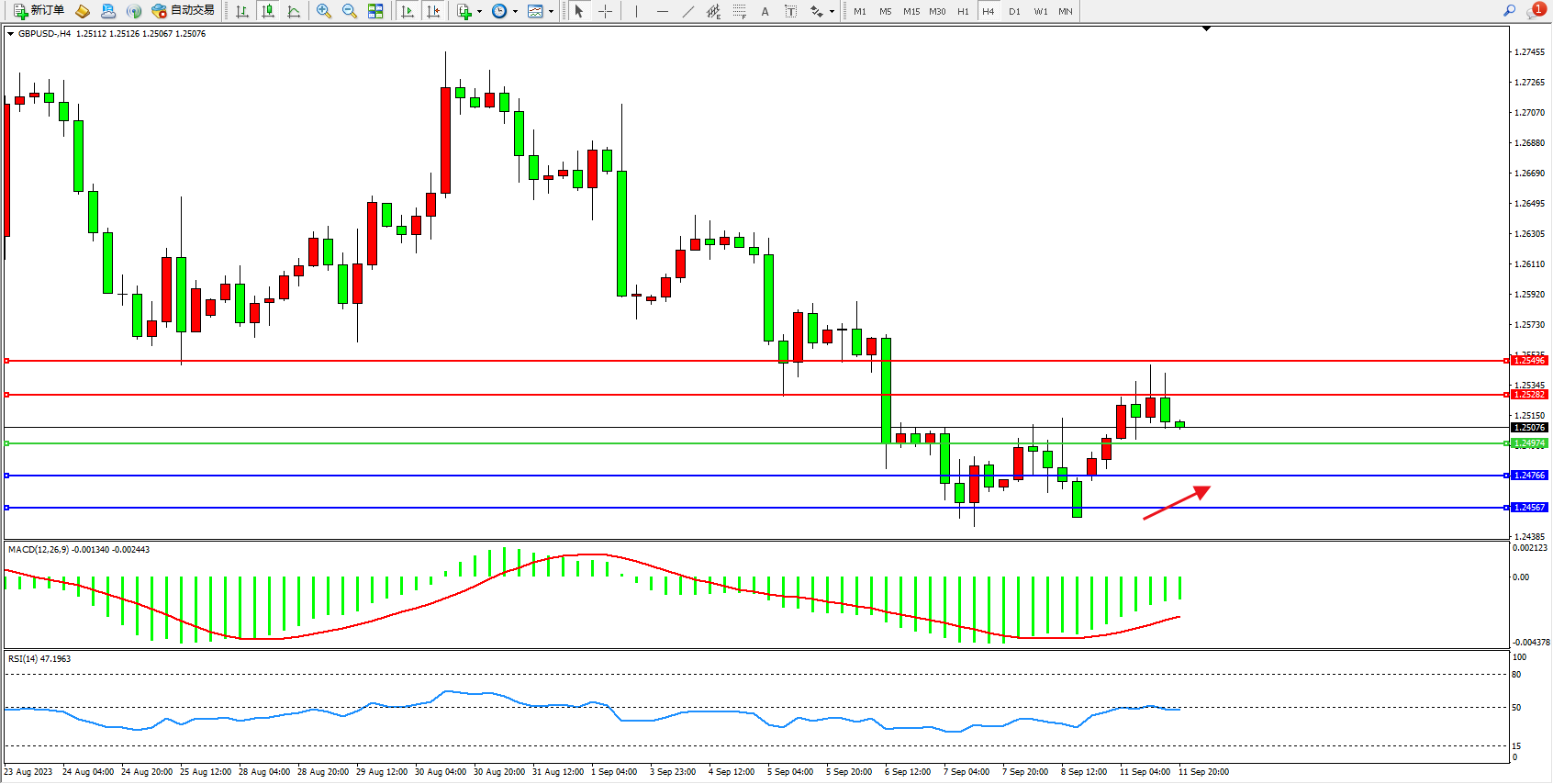 英镑美元GBPUSD ——4小时K线图显示: