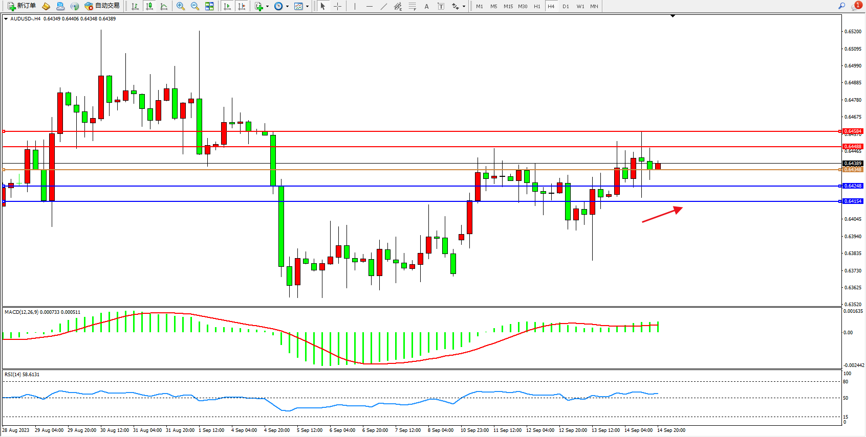 澳元兑美元维持0.64389附近震荡,澳大利亚8月就业人数激增,就业参与率创历史新高,失业率稳定在3.7%,符合市场的预测,而就业参与率飙升至67.0%,为2013年有记录以来的最高水平。
