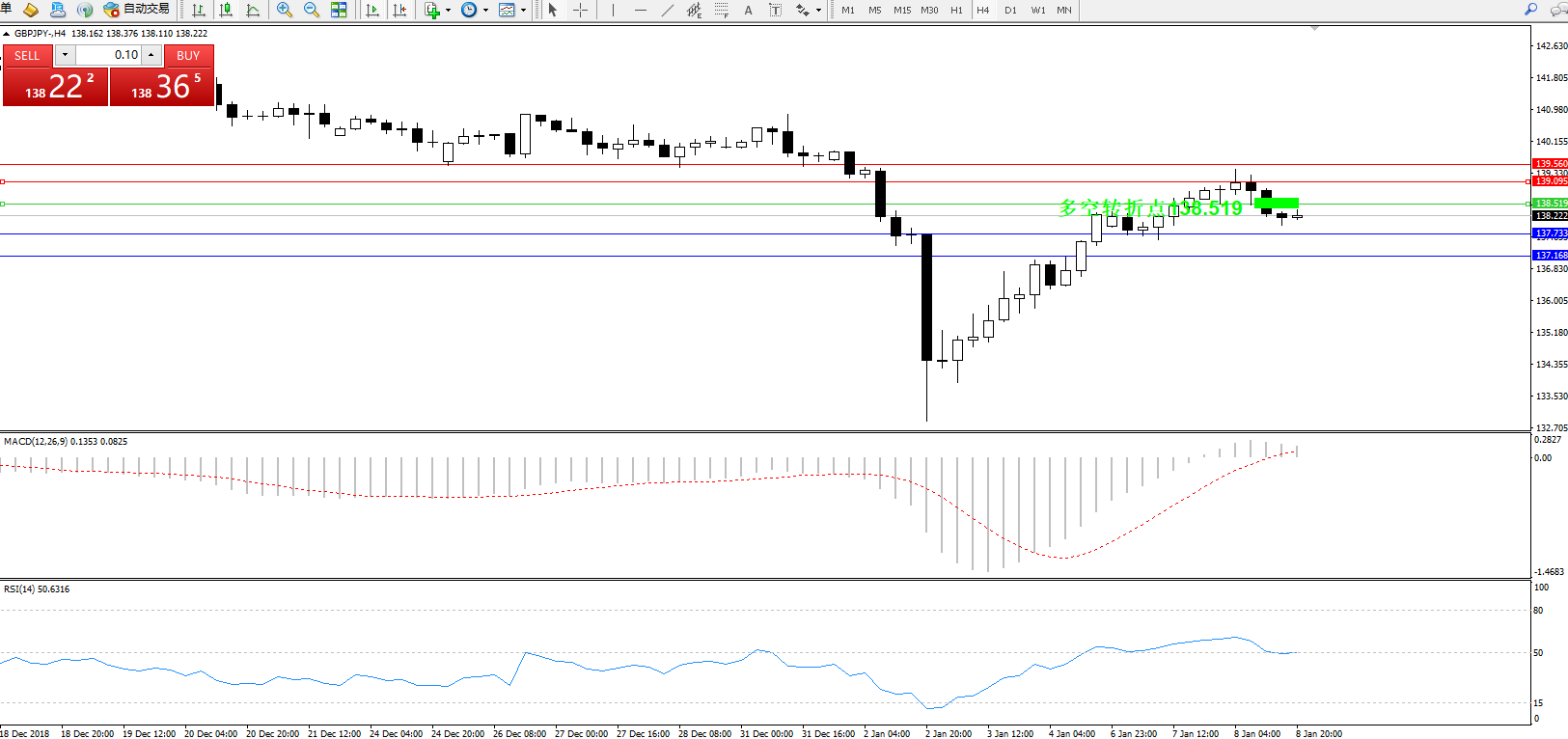 交易策略:138.519下方看跌,目标137.733137.168