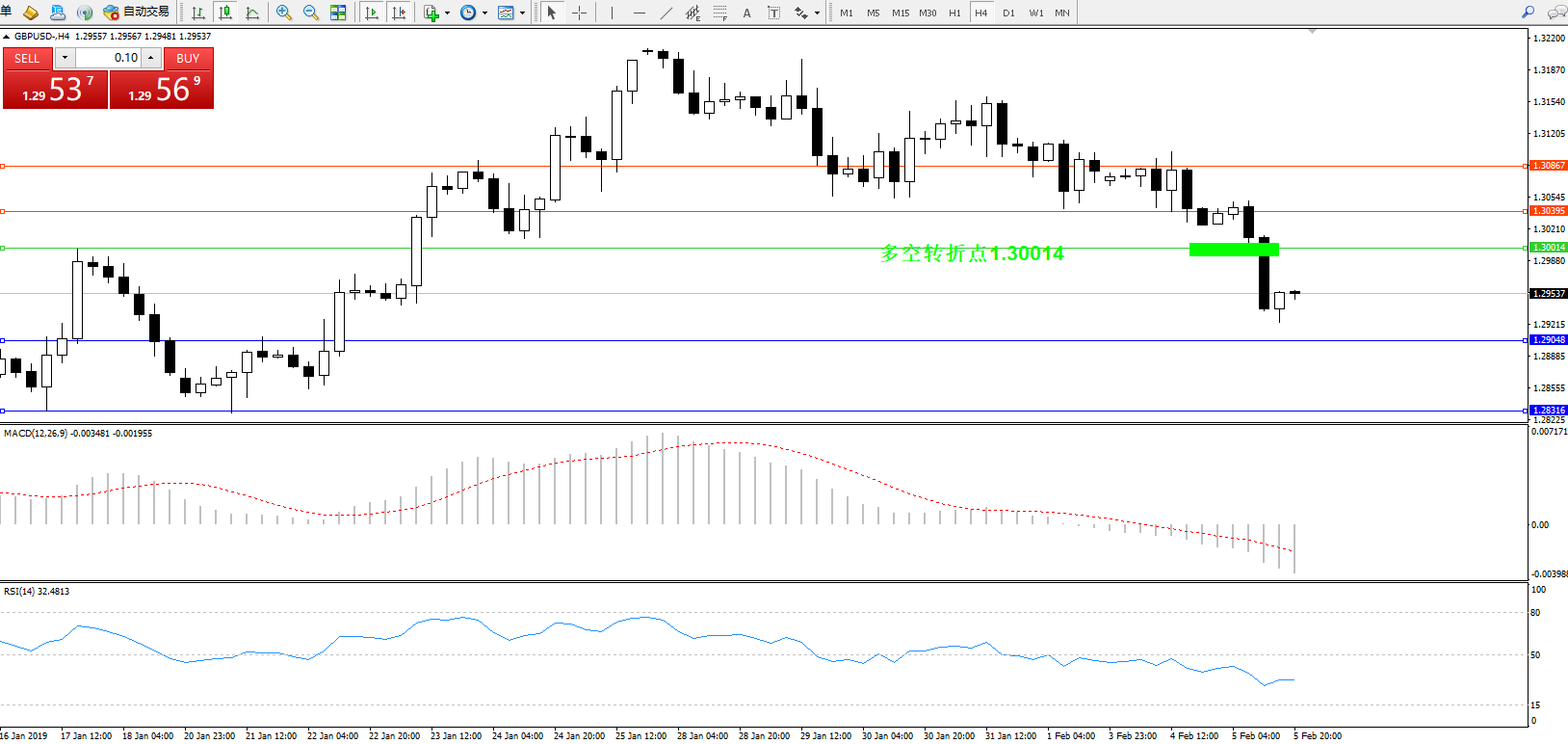 交易策略:1.30014下方看跌,目标1.290481.28316