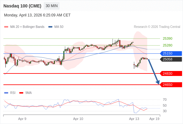 在 25150 之下,看跌,目标价位为 24830 ,然后为 24650 。