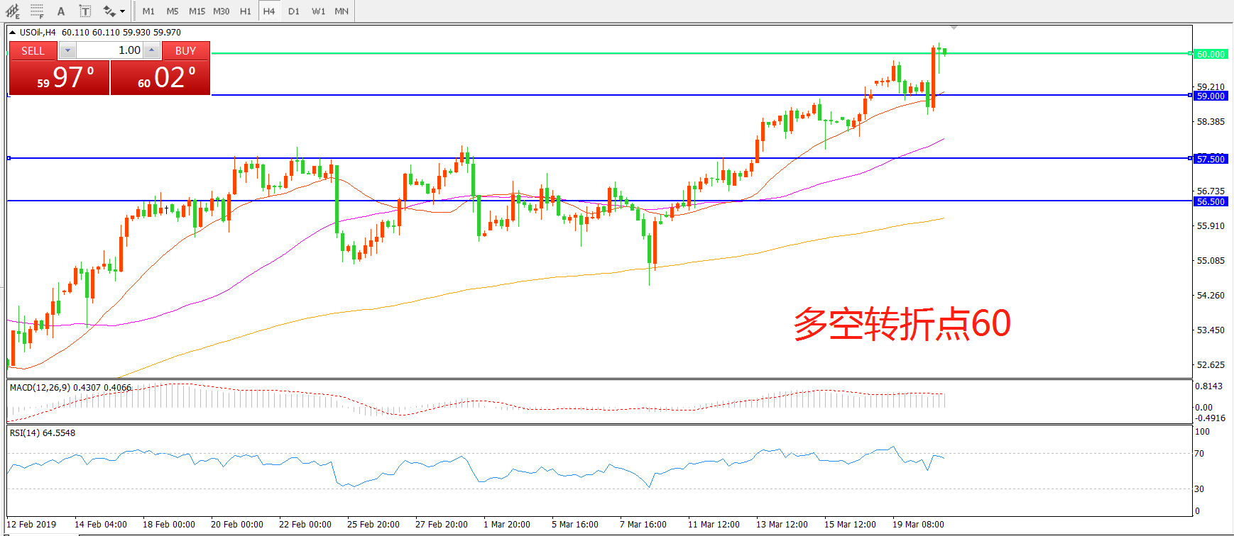 多空转折点:60.00