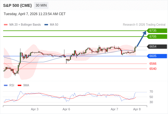 在 6605 之上,看涨,目标价位为 6705 ,然后为 6735 。