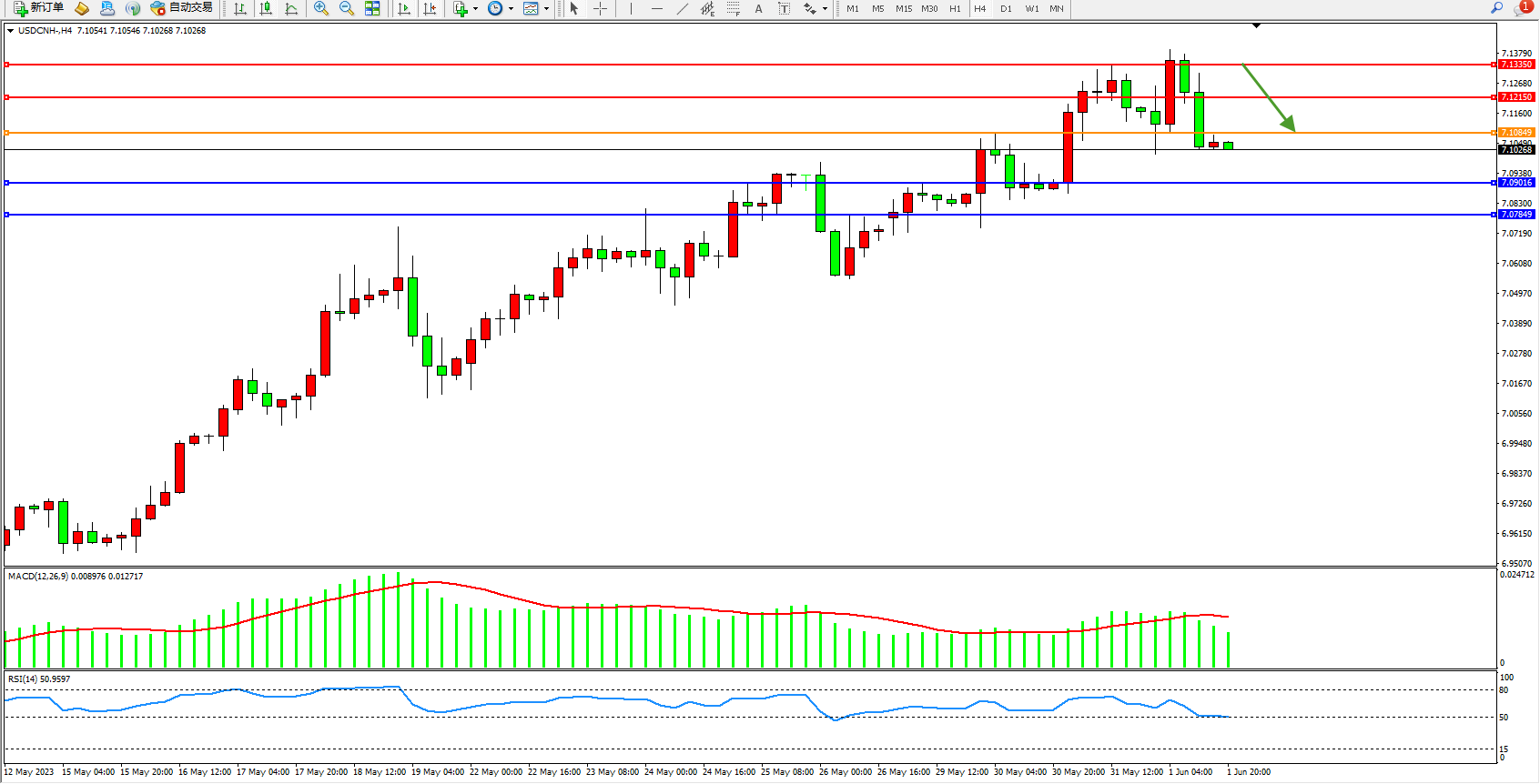 美元兑人民币维持7.10268附近震荡,2023年财政部将在香港特别行政区发行300亿元人民币国债。人民币国债分四期发行,规模分别为120亿元、60亿元、60亿元、60亿元。现定于6月14日通过招标发行首期人民币国债,包括2年期60亿元、3年期40亿元和10年期20亿元,具体发行安排将在香港金融管理局债务工具中央结算系统(CMU)公布。